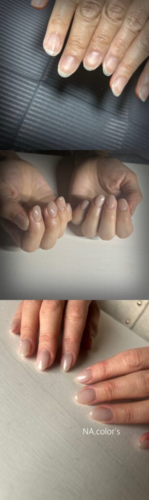 付け替え時にベースジェルを一層残す技法を取り入れる事で爪が薄くなることがなく、爪のトラブルを最小限に抑え継続してジェルネイルを楽しんで頂けます
